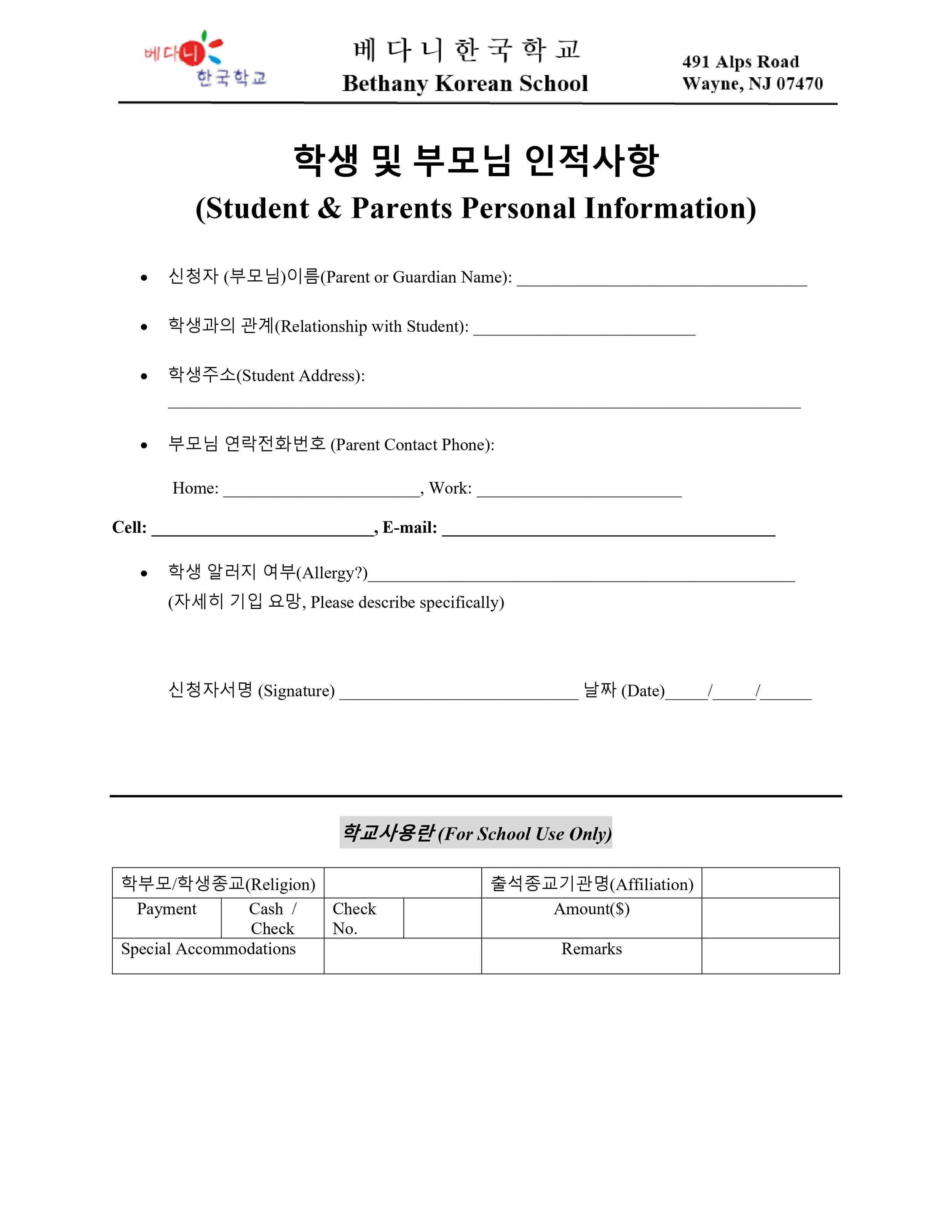 수강신청서 (Registration Form)